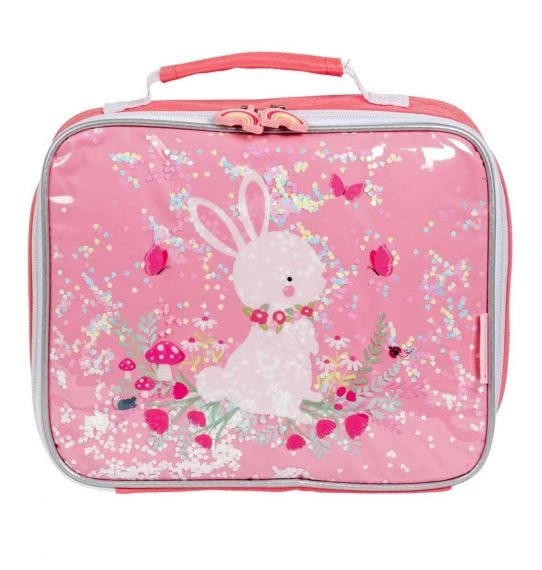 Het koeltasje met konijn design is ideaal voor naar school(reisjes), picknicks of onderweg. Het geïsoleerde tasje heeft een handig hengsel, sluit gemakkelijk met een rits en is groot genoeg voor een broodbakje, stuk fruit en pakje drinken. De bewegende glitters maken dit koeltasje nog leuker!