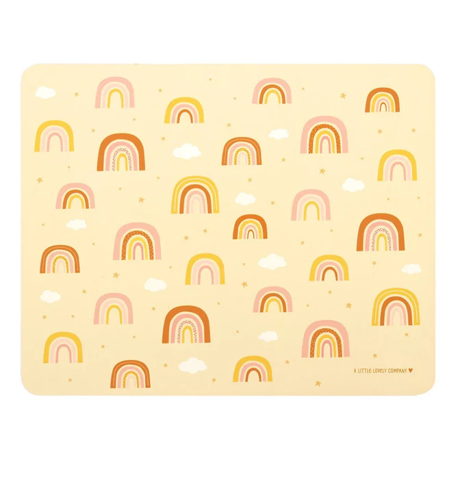 Het vanillegele vinyl placemat met regenbogen is ideaal voor kinderen. Het placemat is makkelijk schoon te houden en heeft een royaal formaat. Daardoor biedt het alle ruimte om comfortabel van te eten of om op te knutselen. Dankzij de antislip laag blijft het placemat netjes op zijn plek liggen.