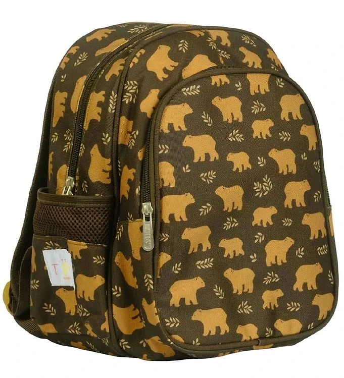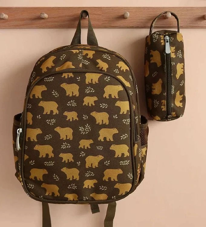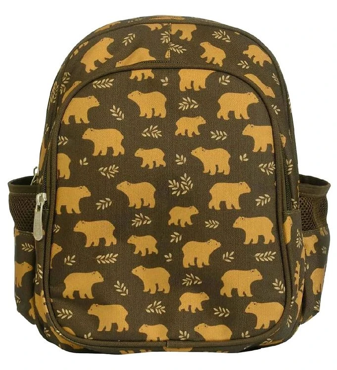 Coole A Little Lovely Company rugzak in donkerbruin, met all over een print van beren en bladen.