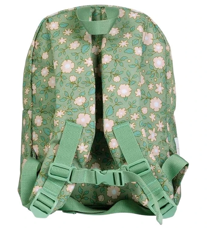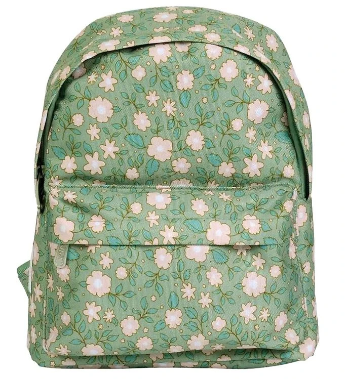 Schattige rugzak van A Little Lovely Company in het groen, met all over een print van bloemen.